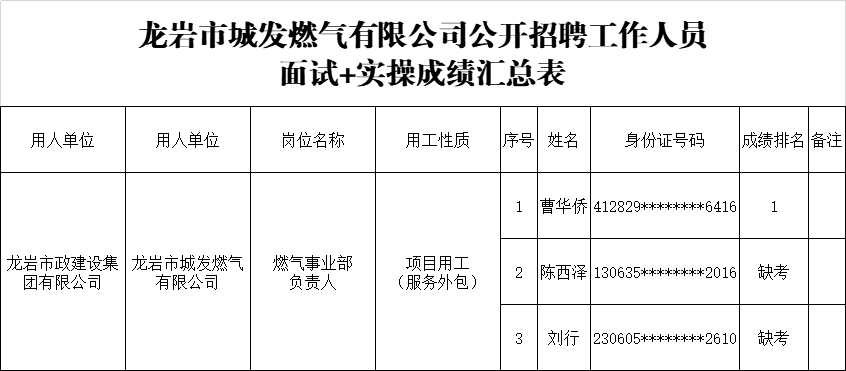 • Time:2025-05-12龍巖市政建設(shè)集團有限公司公開招聘工作人員面試+實操成績排名的公示